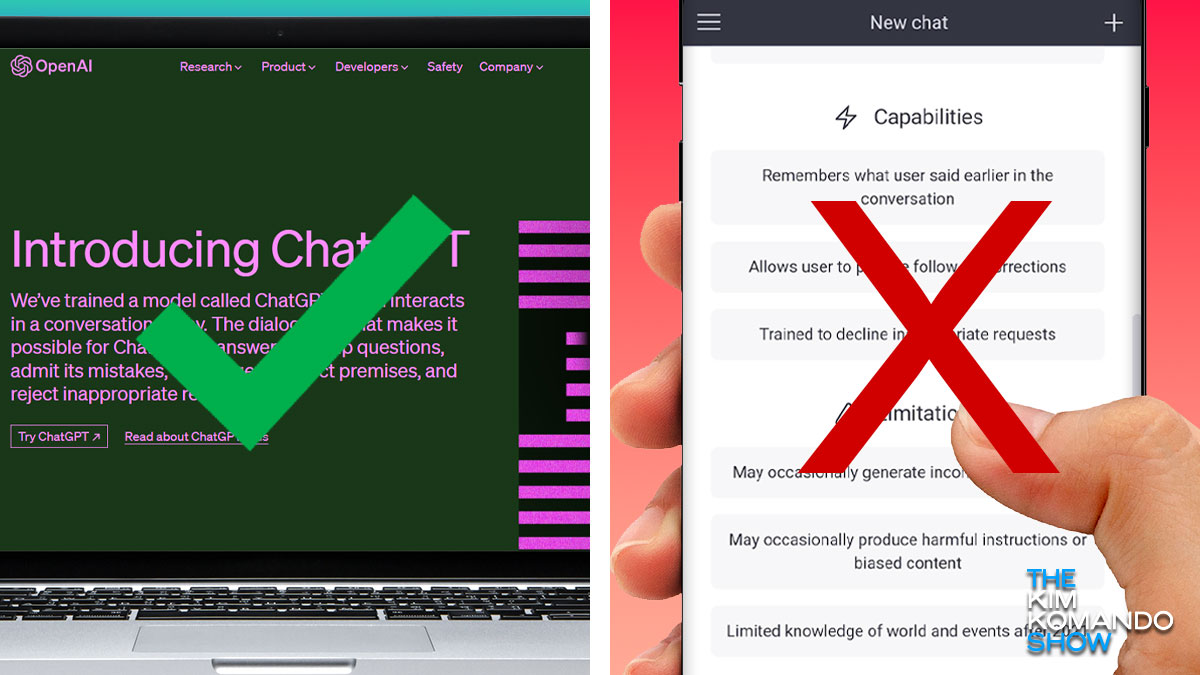 Here’s another thing you need to know to avoid getting scammed: ChatGPT doesn’t have an app. It’s only available online at chat.openai.com.